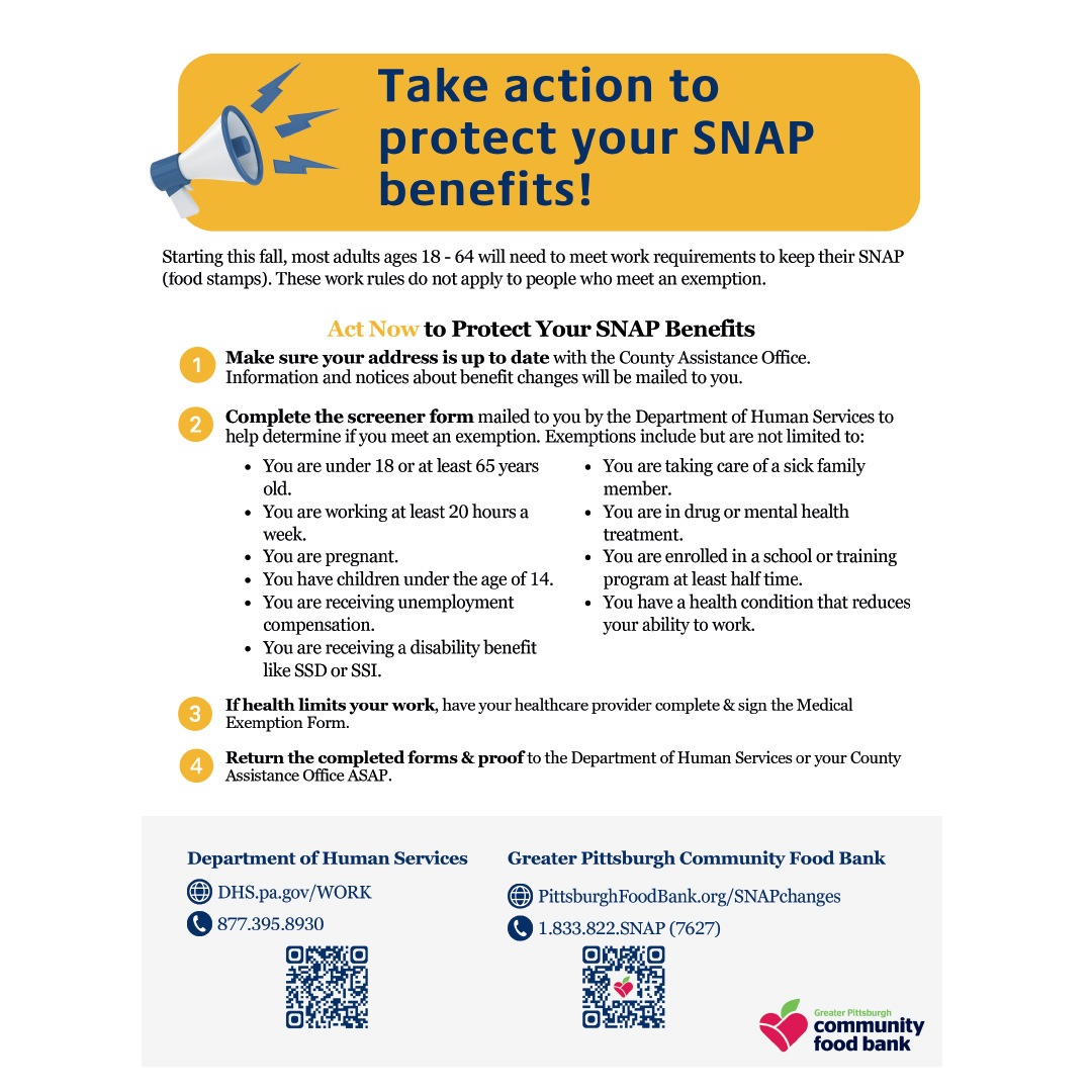 Starting this fall, most adults ages 18–64 will need to meet work requirements to keep their SNAP (food stamp) benefits. These new rules do not apply to everyone—certain exemptions exist, so it’s important to take action now to protect your benefits.